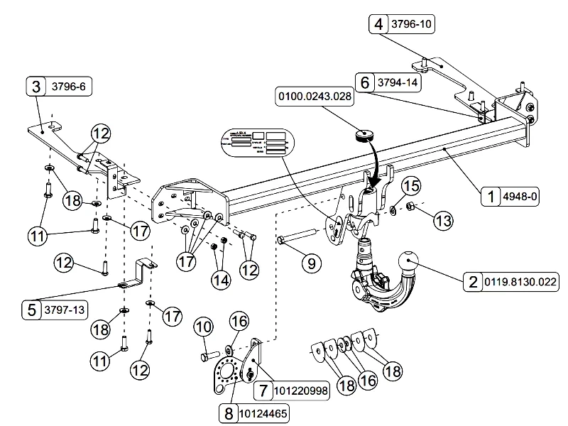 Otrzymujesz kompletny hak gotowy do zamontowania, w zestawie znajduje się: