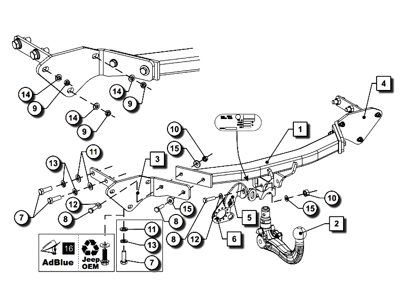 Wypinany pionowo hak holowniczy ORIS Jeep Renegade 2014- + Moduł 7PIN