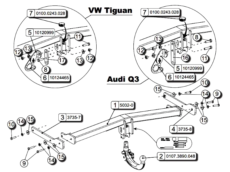 Wypinany pionowo hak holowniczy ORIS Audi Q3 I 2011-2019 + wiązka dedykowana