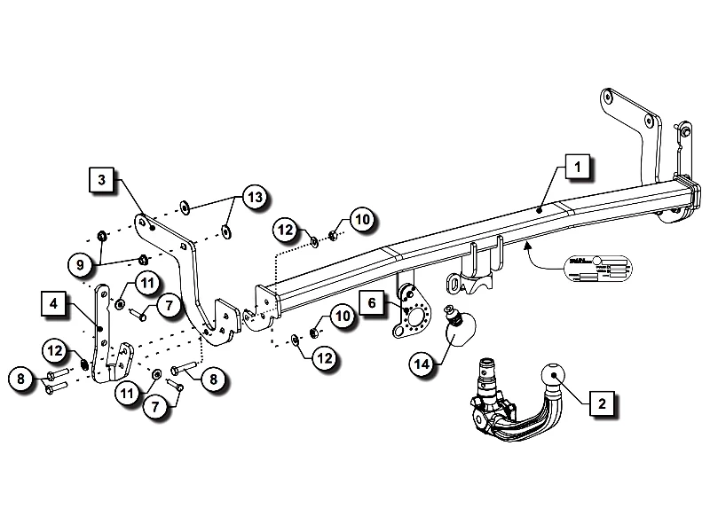 Otrzymujesz kompletny hak gotowy do zamontowania, w zestawie znajduje się: