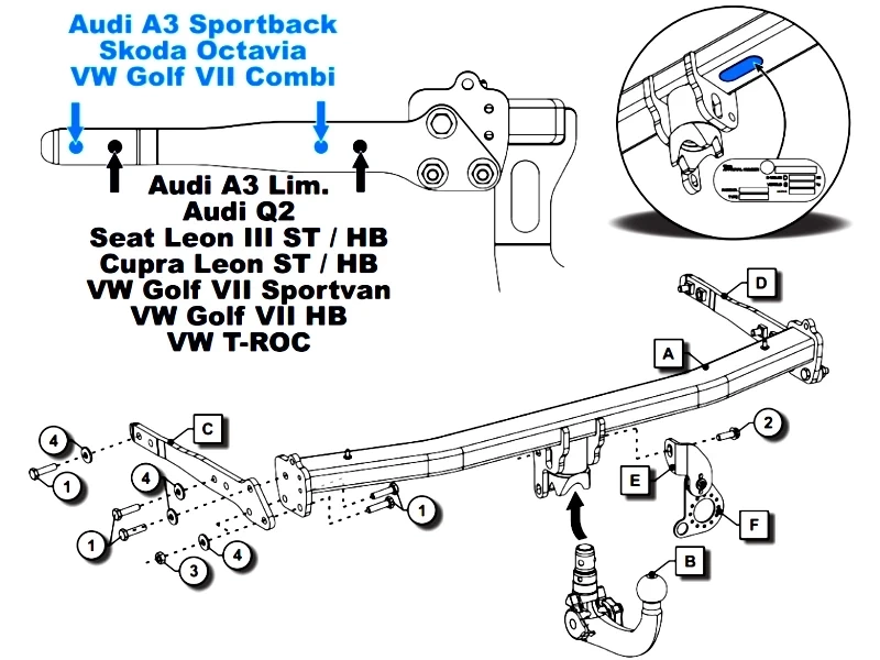 Wypinany pionowo hak holowniczy ORIS VW Volkswagen Golf VII MK7 Hatchback 2012-2019