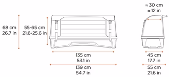 Thule Onto 2 to tylni box bagażowy montowany na platformę Thule EasyFold 3 (945). Zapewnia aż 300 litrów łatwo dostępnej przestrzeni, idealnej na torby golfowe, wózek dziecięcy czy bagaż na wyjazd. Niska pozycja ułatwia załadunek, a odchylana platforma pozwala zachować dostęp do klapy bagażnika.