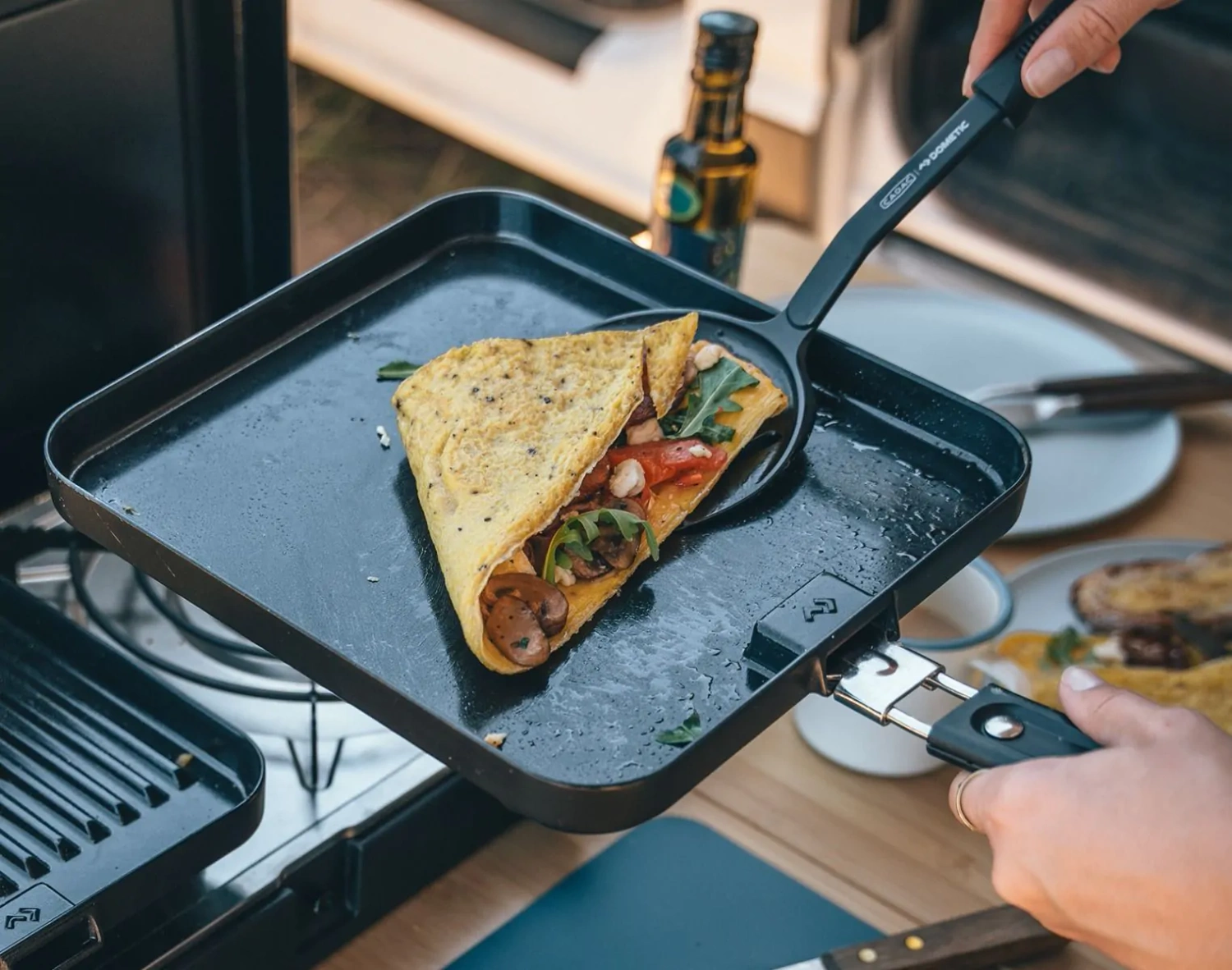 Płyta jest kompatybilna z kuchenkami wszystkich marek, w tym z serią Cadac 2 Cook, co sprawia, że możesz z niej korzystać w różnych urządzeniach. Jej płaska powierzchnia idealnie nadaje się do przygotowywania potraw techniką stir-fry, naleśników, omletów, jajek sadzonych, boczku i innych szybkich dań.