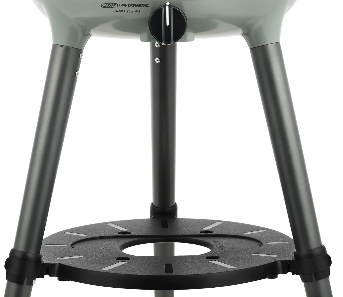 - Regulowana nóżka pozwala wypoziomować grill na każdej powierzchni
