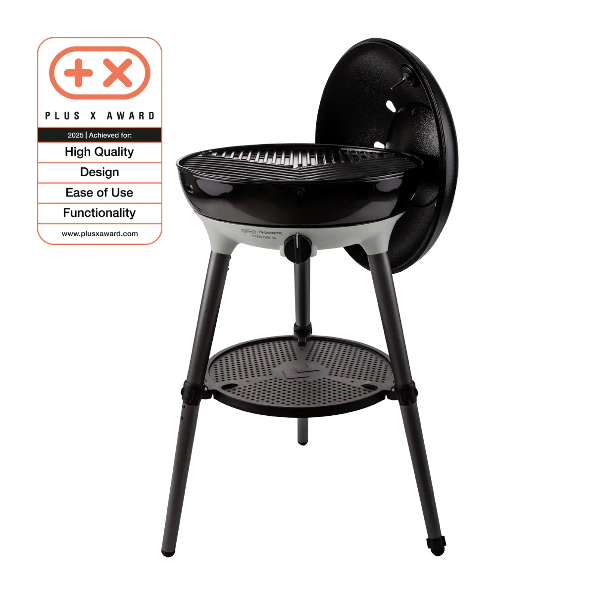 Odkręcane, regulowane nóżki (2-częściowe i wbudowana nóżka) umożliwiają ustawienie grilla zarówno na stole, jak i na ziemi. Grill pozwala grillować, piec i gotować, a w zestawie znajdują się: ruszt Grill 2 Braai, pokrywa z termometrem, podstawka pod garnek oraz torba transportowa.