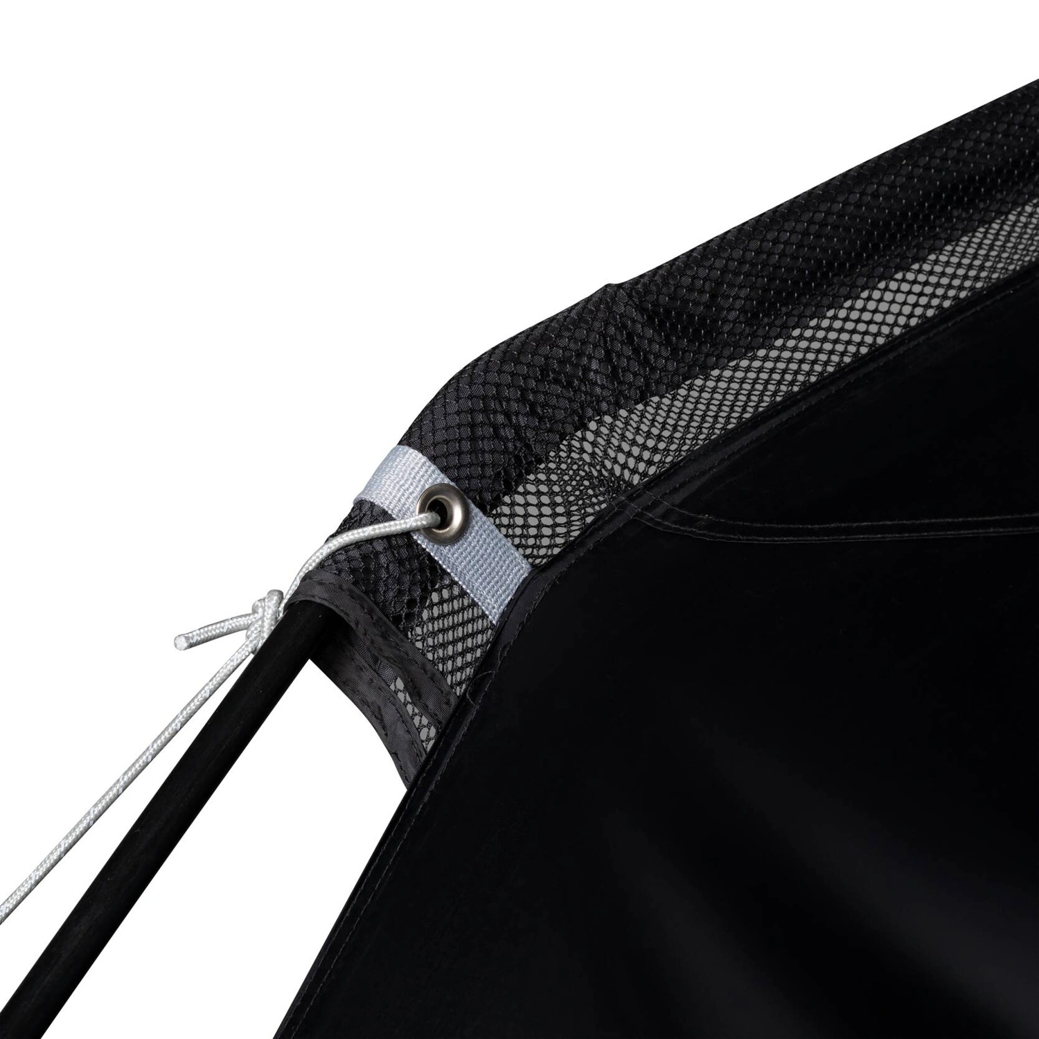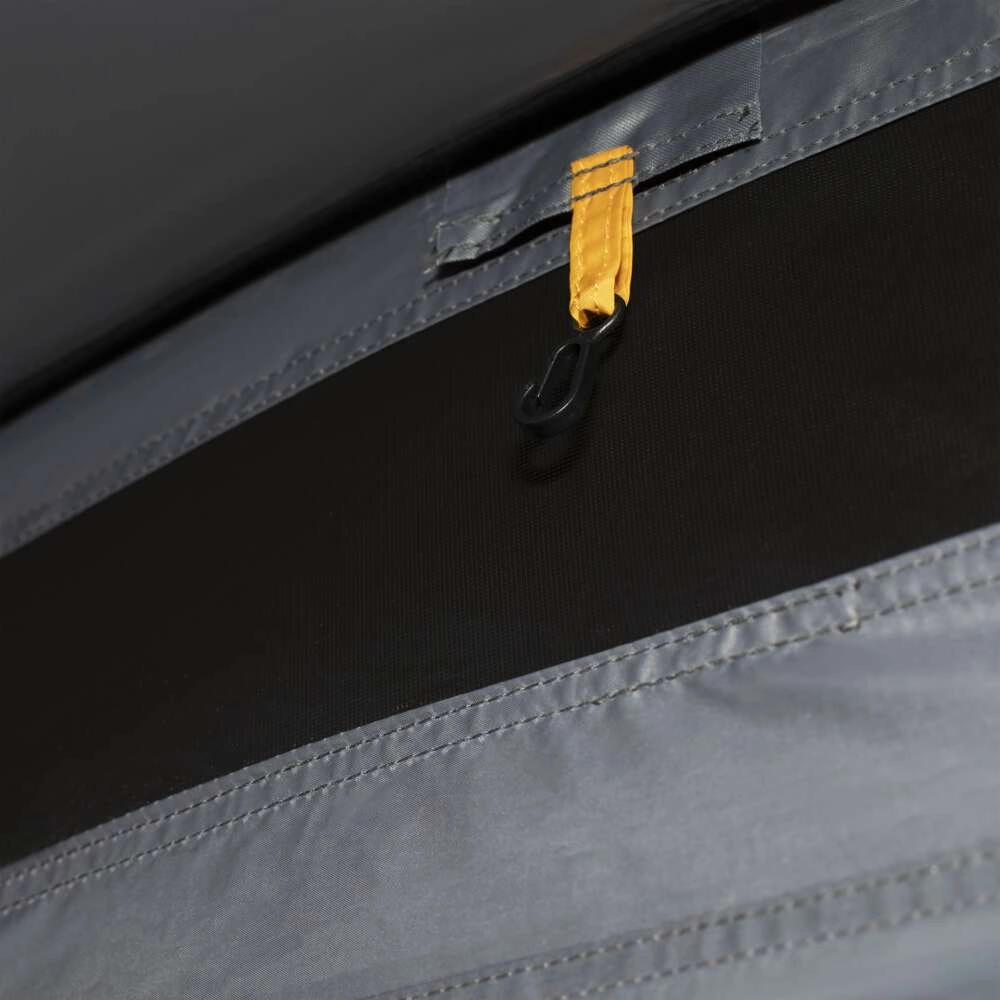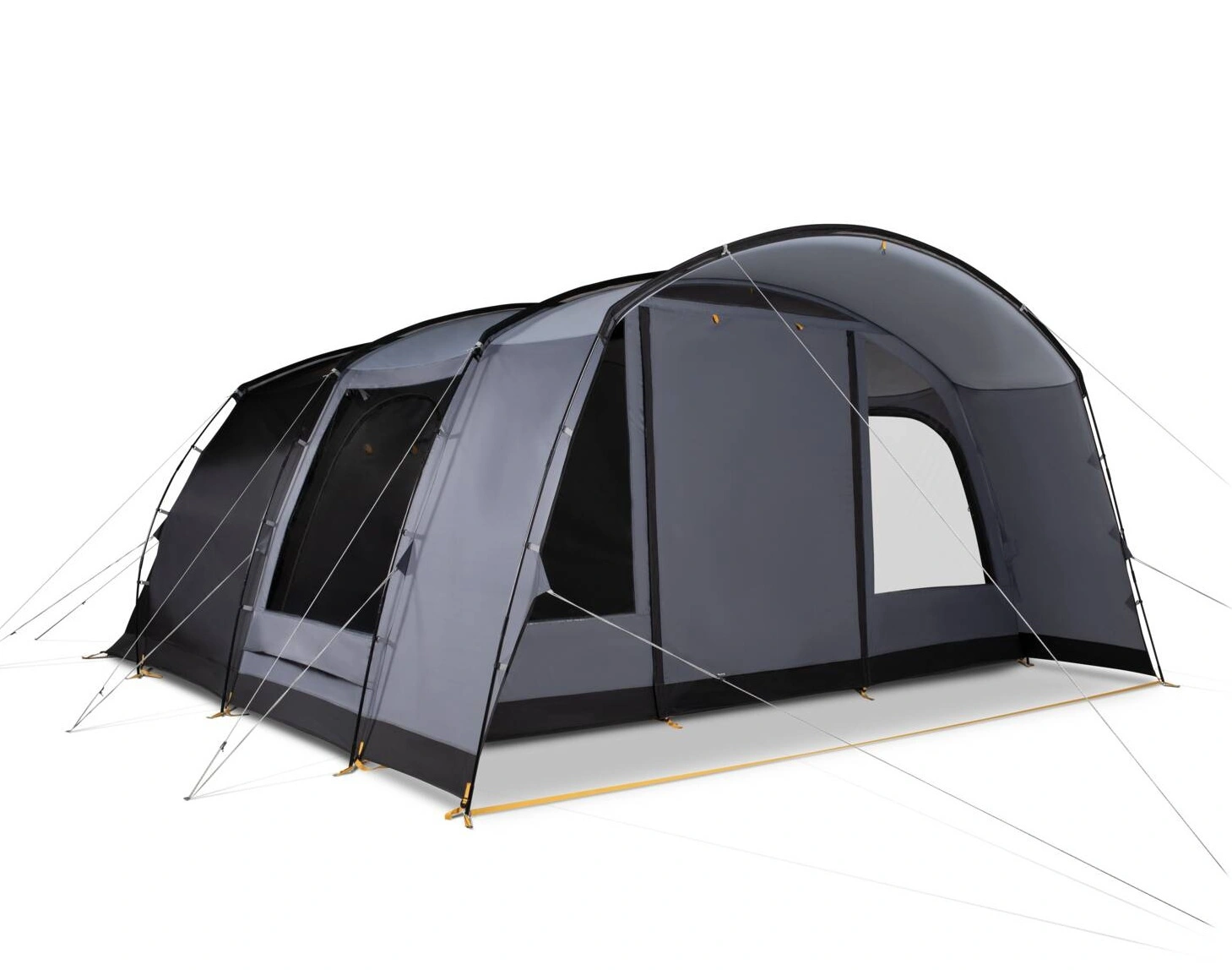 Stelaż z włókna szklanego gwarantuje elastyczność i stabilność, a tunelowa, wstępnie profilowana konstrukcja maksymalizuje przestrzeń wewnętrzną, zapewniając dużą wysokość stania i łatwe, szybkie rozstawianie namiotu.
