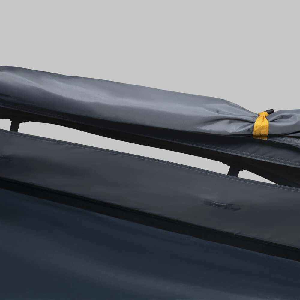 Duży przedni daszek tworzy zadaszoną strefę wypoczynkową, idealną na relaks, poranną kawę lub przechowywanie sprzętu. Namiot oferuje dwa wejścia: jedno przednie w kształcie litery D oraz boczne, co poprawia komunikację, wentylację i wygodę użytkowania.