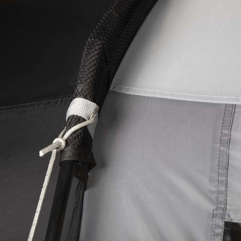 Namiot wyposażono w trzy zaciemniane sypialnię, które skutecznie ogranicza dostęp światła do wnętrza. To rozwiązanie znacząco podnosi komfort snu, szczególnie wczesnym rankiem oraz podczas dłuższego odpoczynku w ciągu dnia. Idealne dla osób, które chcą się naprawdę wyspać – niezależnie od pory dnia.