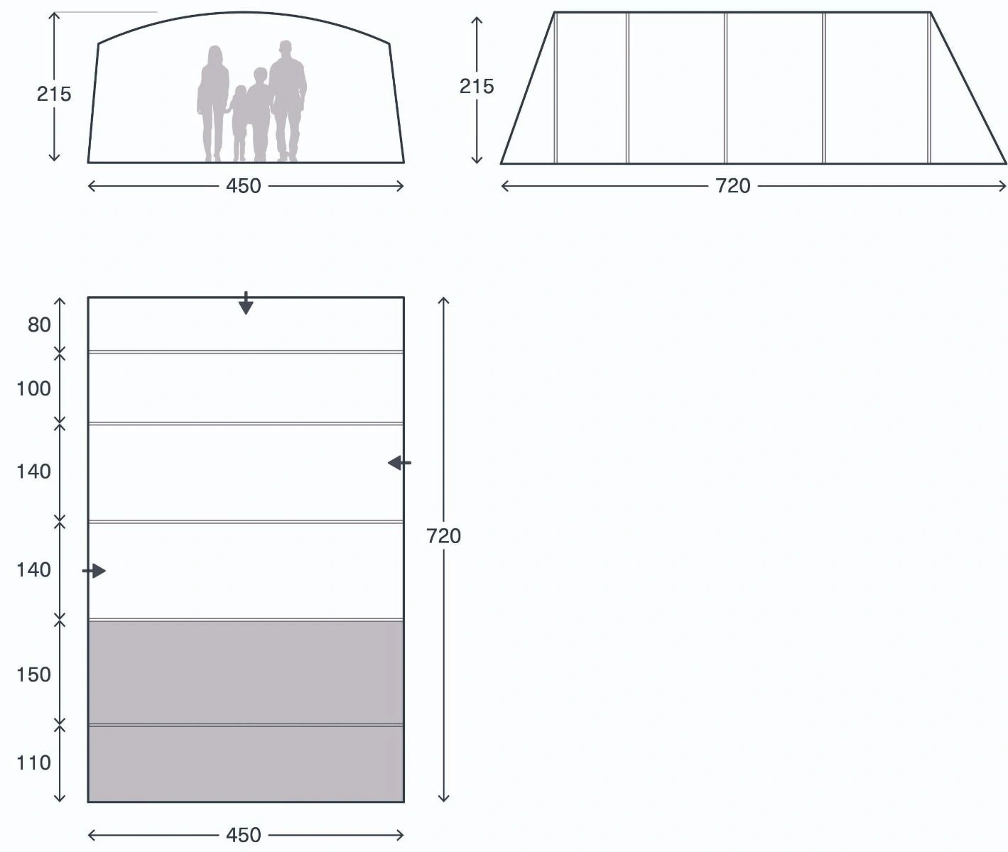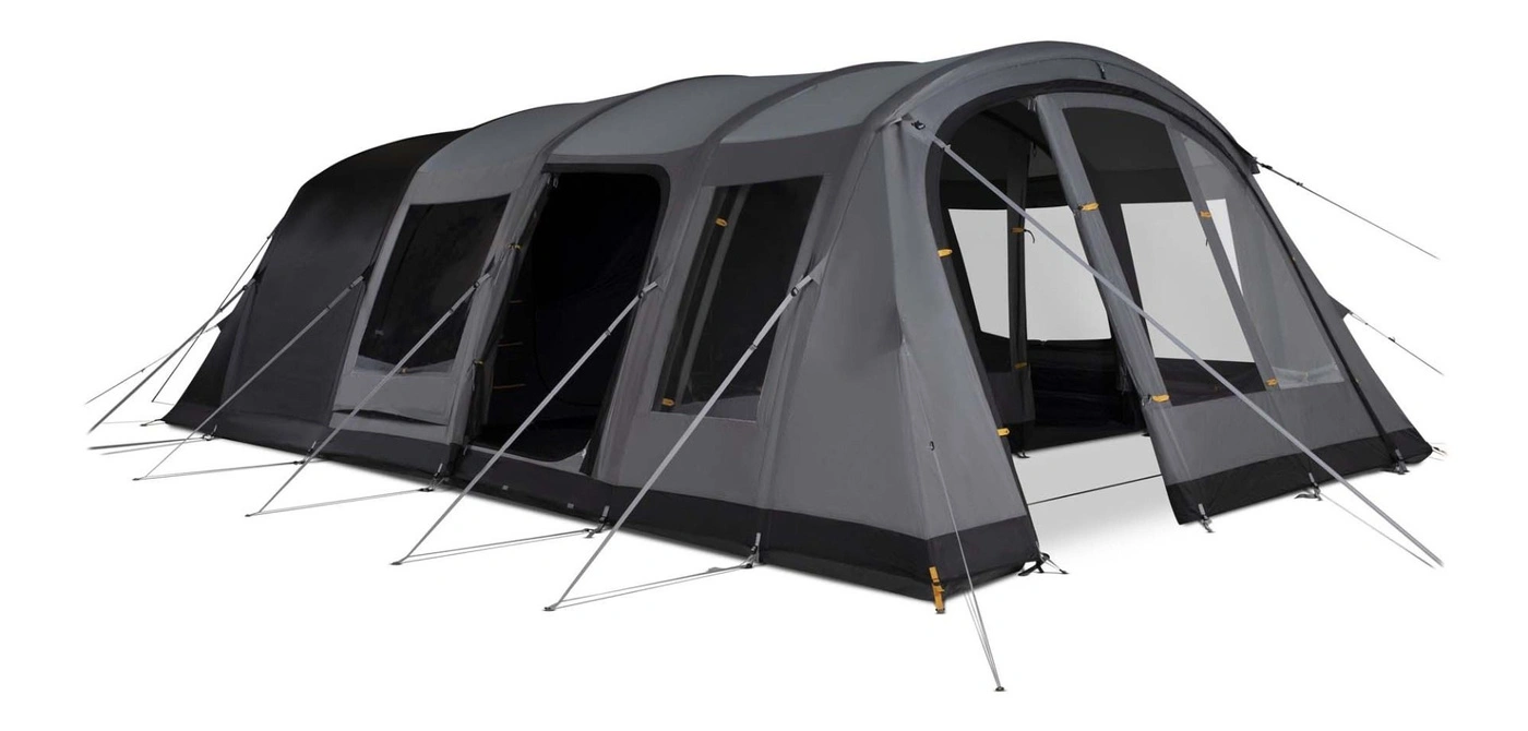 Model Saunton 6 Air wykorzystuje pompowaną konstrukcję z wstępnie profilowanymi tubami powietrznymi, która zapewnia szybkie i stabilne rozstawianie w około 15 minut. Tunelowa konstrukcja zapewnia komfortową wysokość użytkową w części dziennej oraz optymalne wykorzystanie przestrzeni w sypialni.