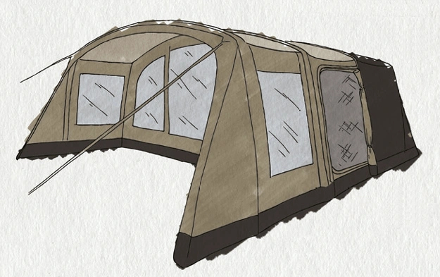 Pompowana konstrukcja Air Frame oraz tunelowa konstrukcja zapewnia komfortową wysokość użytkową w części dziennej oraz optymalne wykorzystanie przestrzeni w sypialni.. Indywidualne pompowanie każdej tuby oraz zawory typu Boston umożliwiają szybkie rozstawianie i składanie namiotu w około 11 minut.