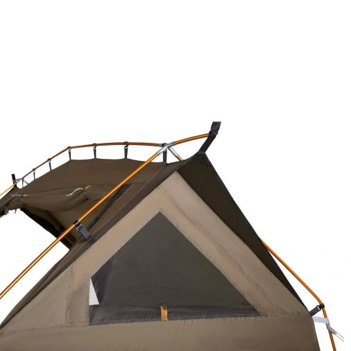 Namiot oparty jest na lekkim stelażu aluminiowym, odpornym na korozję i odkształcenia. Zewnętrzna konstrukcja typu A-Frame zapewnia wysoką stabilność oraz maksymalne wykorzystanie przestrzeni użytkowej wewnątrz namiotu.