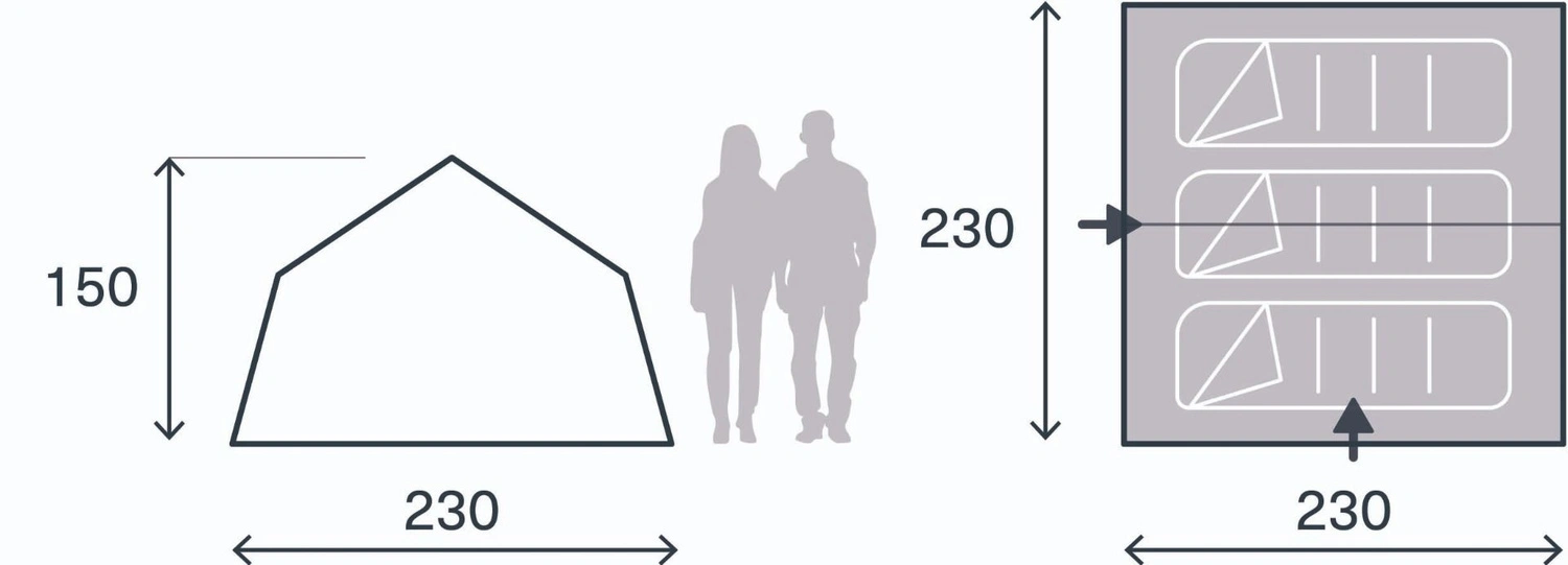 Duże przednie wejście oraz pełnowymiarowe boczne otwarcie ułatwiają dostęp i poprawiają cyrkulację powietrza. Drzwi z moskitierą zwiększają komfort snu i skutecznie chronią przed owadami.