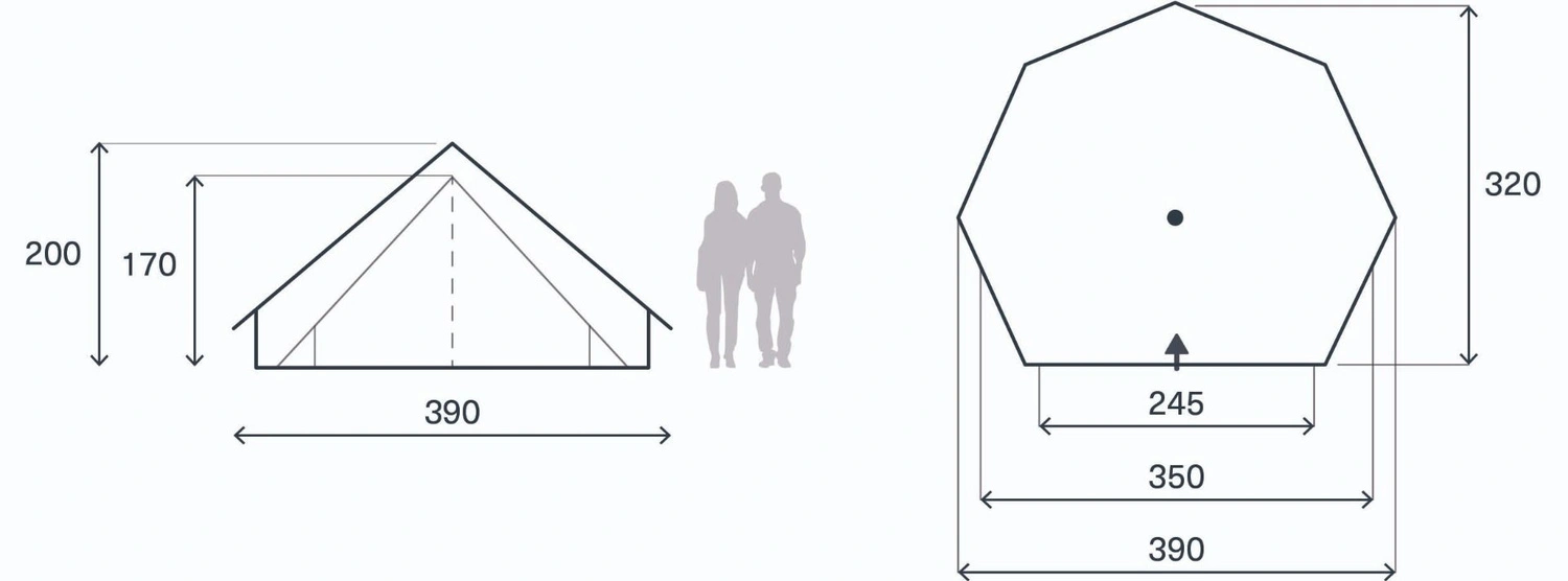 Konstrukcja opiera się na lekkich aluminiowych pałąkach, które tworzą stabilny, a jednocześnie łatwy w obsłudze stelaż. Aluminium jest odporne na korozję i odkształcenia, co przekłada się na długą żywotność namiotu. Prosty układ dwóch pałąków pozwala na bardzo szybkie rozstawienie — czas rozkładania wynosi około 9 minut.