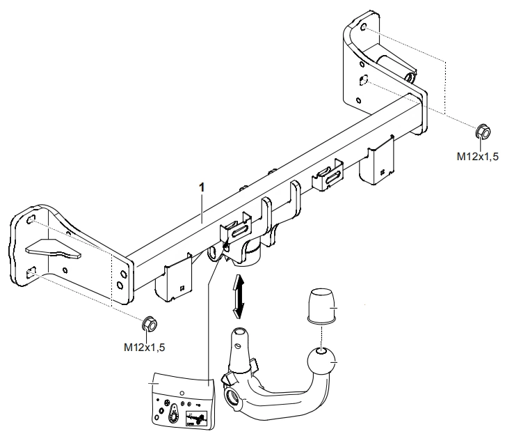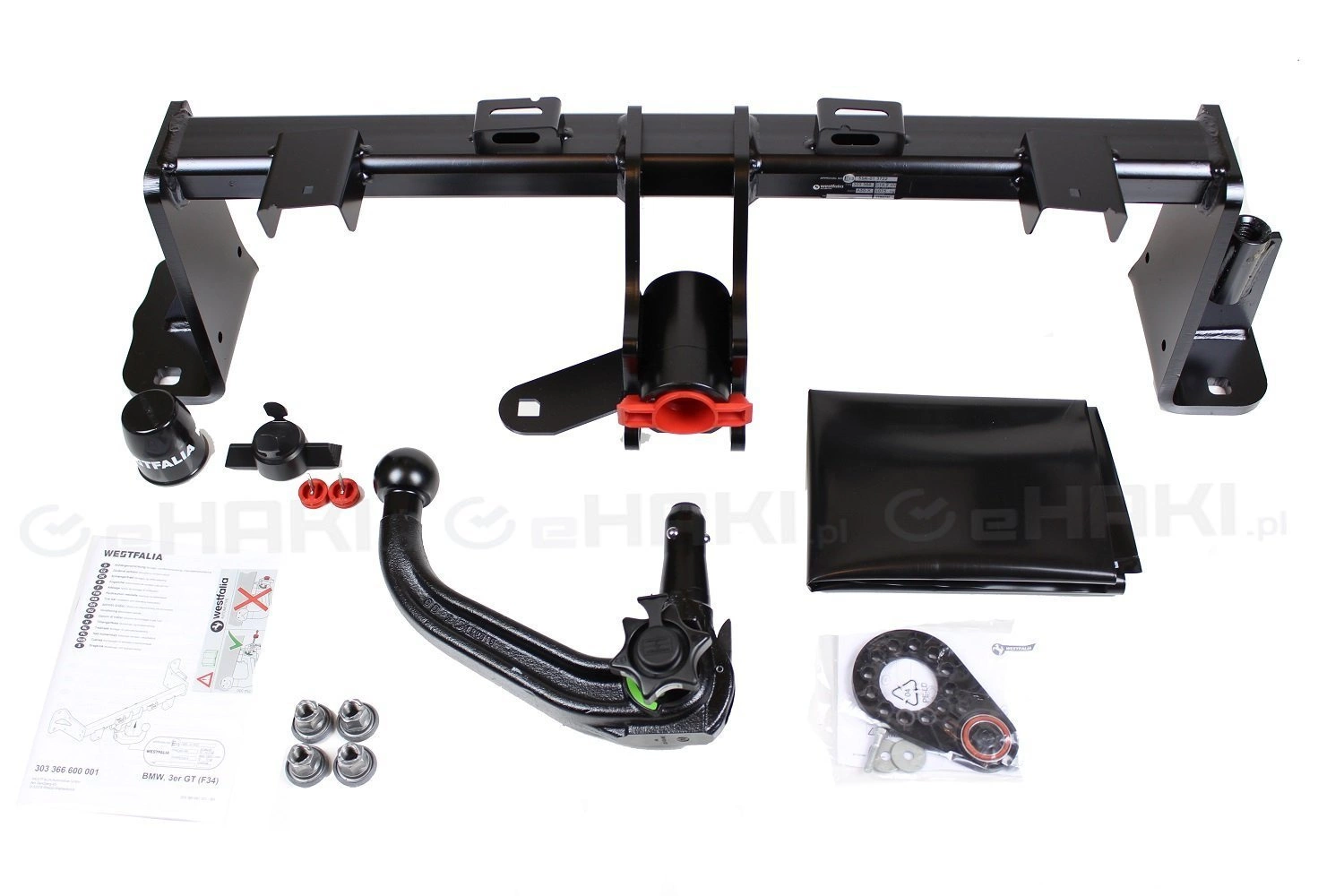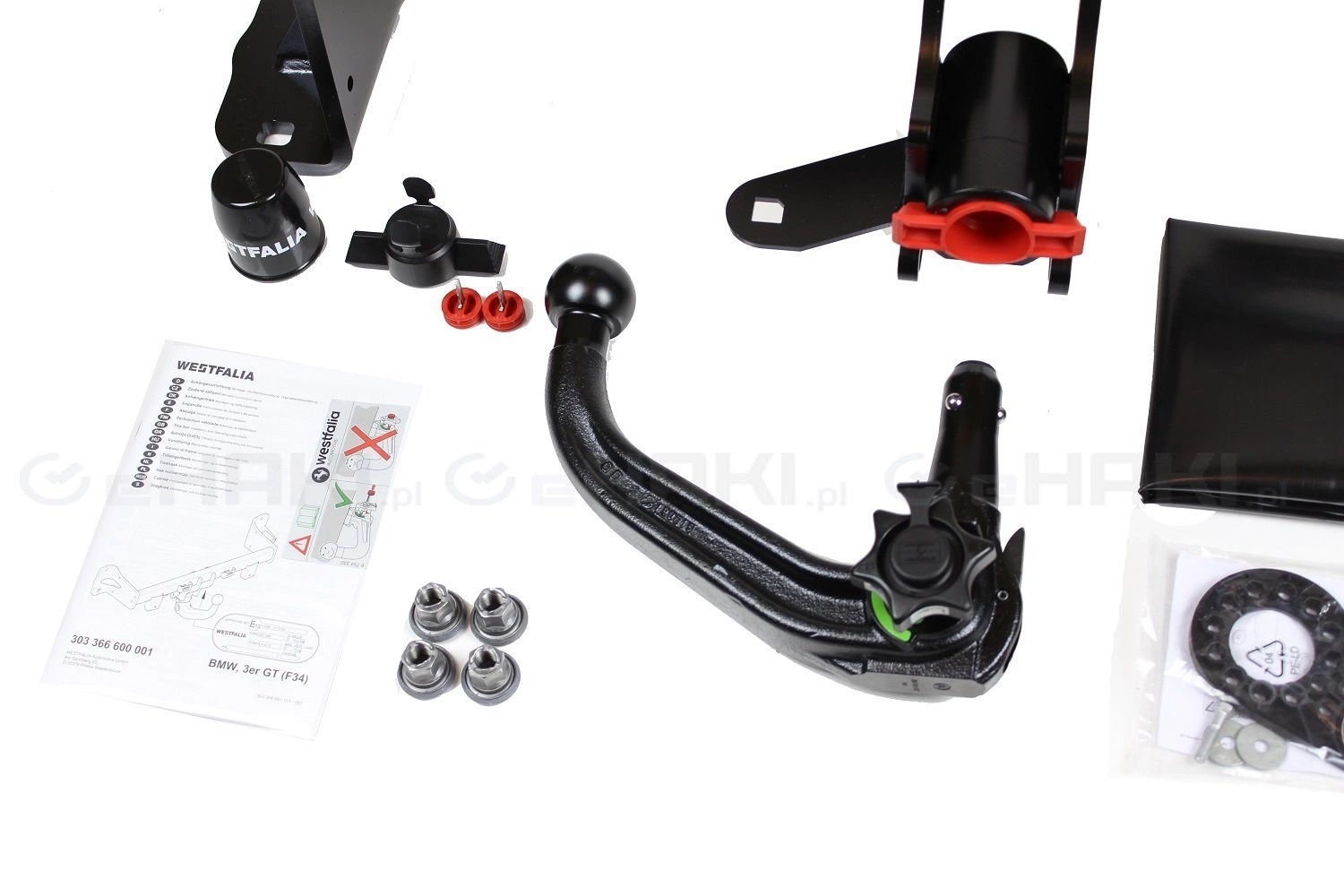 - Należy zamówić (opcjonalnie): Westfalia - 303352613001 (modele z silnikiem benzynowym - osłona termiczna zabezpieczająca mechanizm haka automtycznego), BMW - osłona