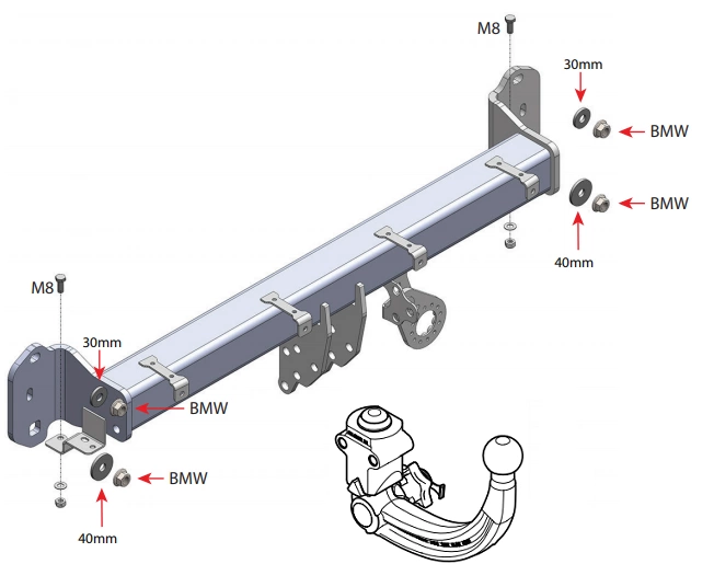 Hak stworzony z myślą o autach BMW charakteryzuje się uciągiem 2000kg oraz naciskiem pionowym do 90kg.