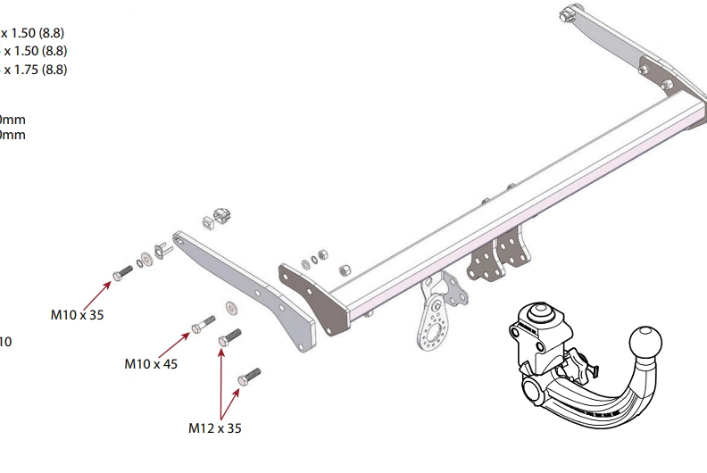Hak stworzony z myślą o autach Suzuki charakteryzuje się uciągiem 1550kg oraz naciskiem pionowym do 103kg.