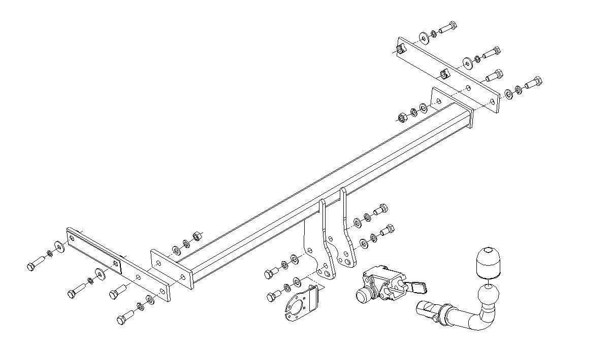 Hak stworzony z myślą o autach VOLKSWAGEN charakteryzuje się uciągiem 1000kg oraz naciskiem pionowym do 50kg.