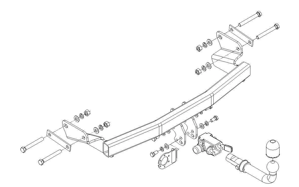 Hak stworzony z myślą o autach JEEP charakteryzuje się uciągiem 1500kg oraz naciskiem pionowym do 105kg.