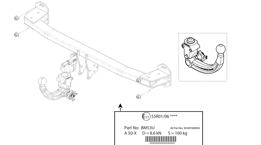 Hak stworzony z myślą o autach BMW charakteryzuje się uciągiem 1500kg oraz naciskiem pionowym do 100kg.
