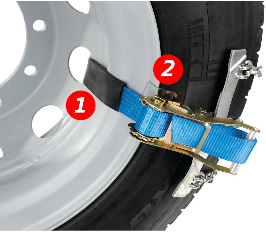 - Elastyczna podkładka na całej długości klamry – chroni oponę przed przecięciem przez ostre krawędzie klamry.