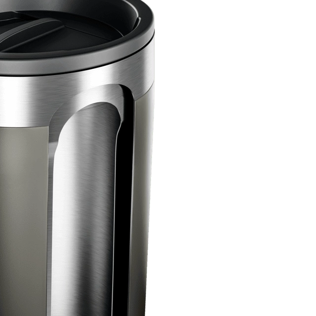 - Kompaktowy kubek ze stali nierdzewnej z podwójną izolacją próżniową. Utrzymuje gorące napoje do 6 h, a zimne do 12 h.