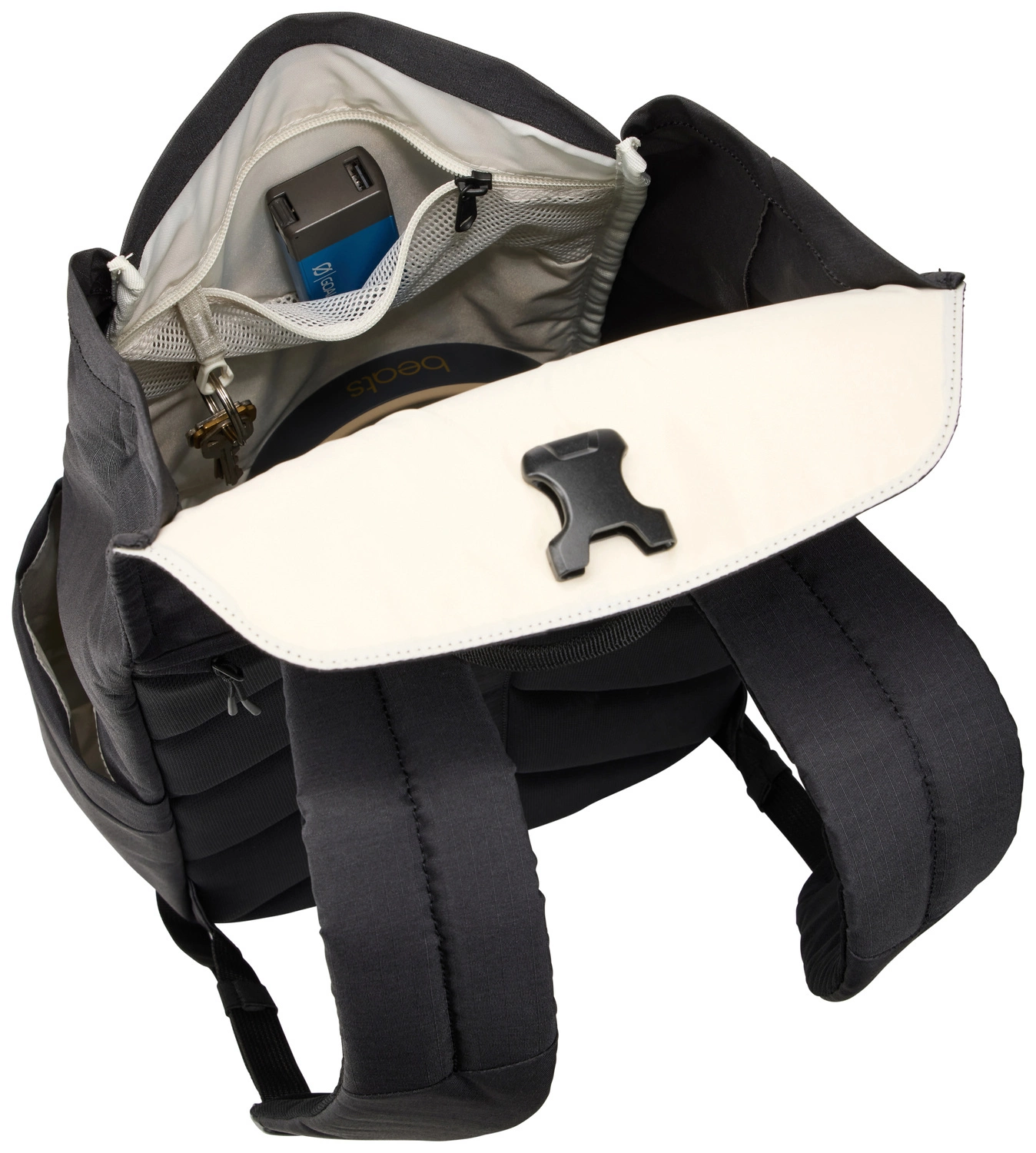 - Regulowana klapa z ukrytym zapięciem na klamrę zabezpiecza rzeczy w głównej komorze