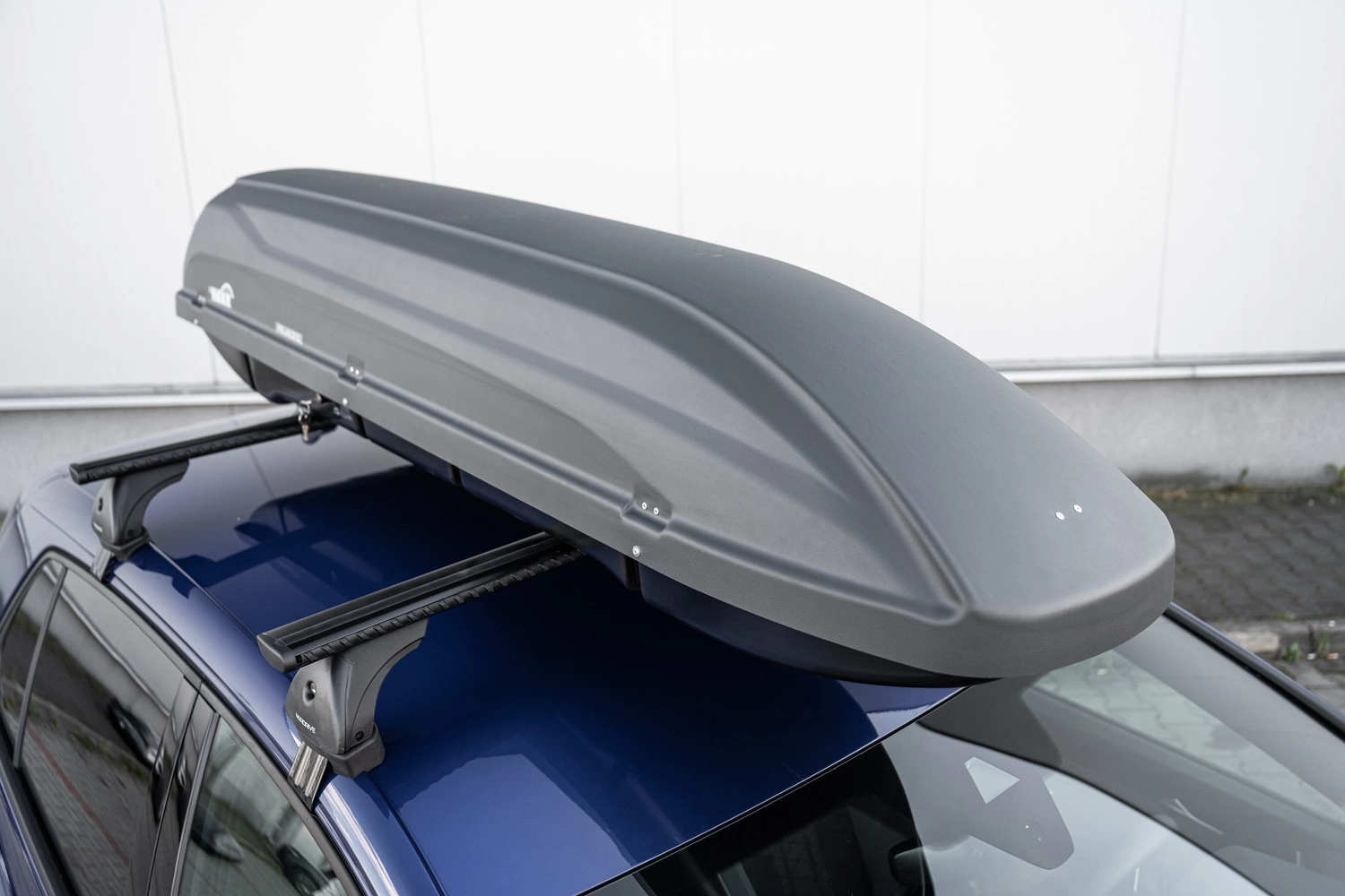 - Stabilne mocowanie: Box wyposażony jest w niezawodny system mocowania, który zapewnia pewne trzymanie na belkach dachowych.