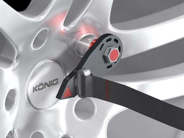 - Ergonomiczna tuleja mocująca: Szybki montaż na oryginalnej nakrętce lub śrubie koła (z wyjątkiem śrub antykradzieżowych).