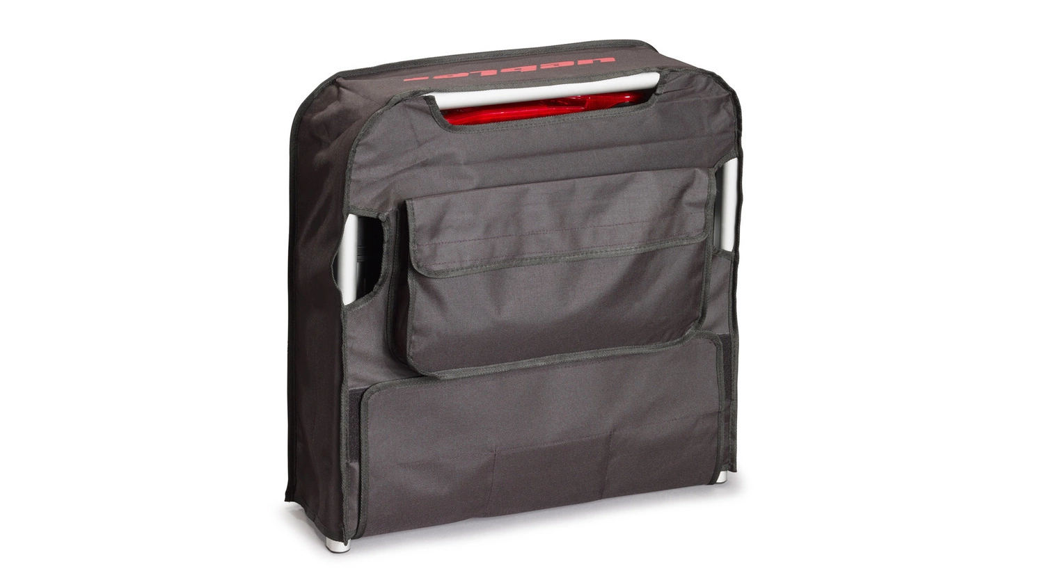 Pokrowiec do przechowywania platformy rowerowej ha hak marki Uebler. Wykonana z wytrzymałego materiału, posiada uchwyty ułatwiające przenoszenie bagażnika.
