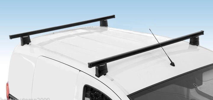Kompletny bagażnik bazowy z klasycznymi, stalowymi belkami wykończonymi antypoślizgową powłoką z PVC.