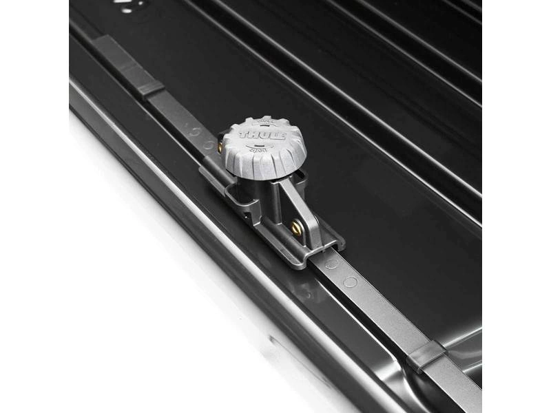 Dzięki innowacyjnemu systemowi montażu FastGrip, box THULE Pacific L 780 można zamontować w kilka minut bez użycia narzędzi. System mocowań automatycznie centruje box na belkach dachowych.