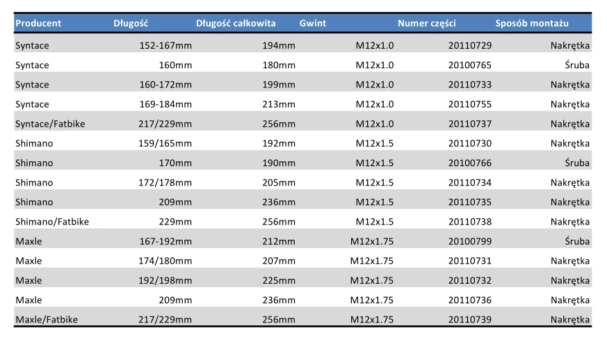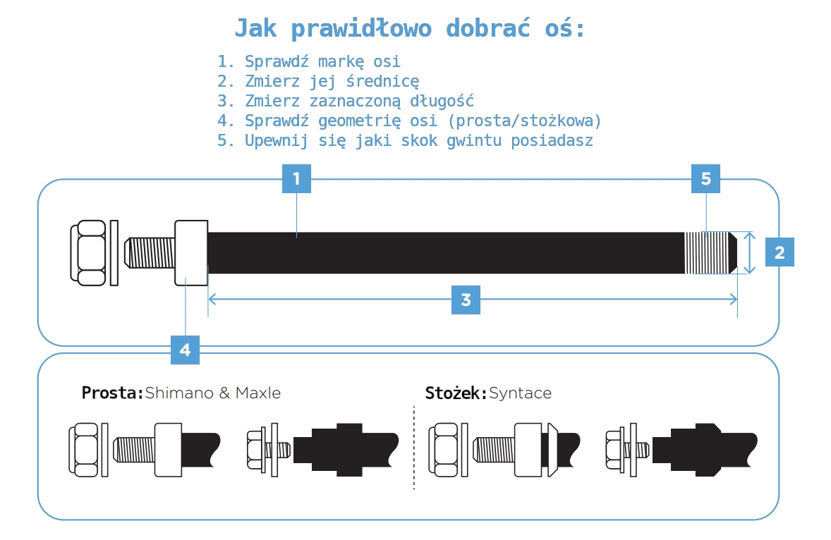 Pamiętaj, przed zakupem sprawdź faktyczne wymiary swojej osi, próby wkręcania niekompatybilnego modelu spowoduje nieodwracalne uszkodzenie osi i roweru!