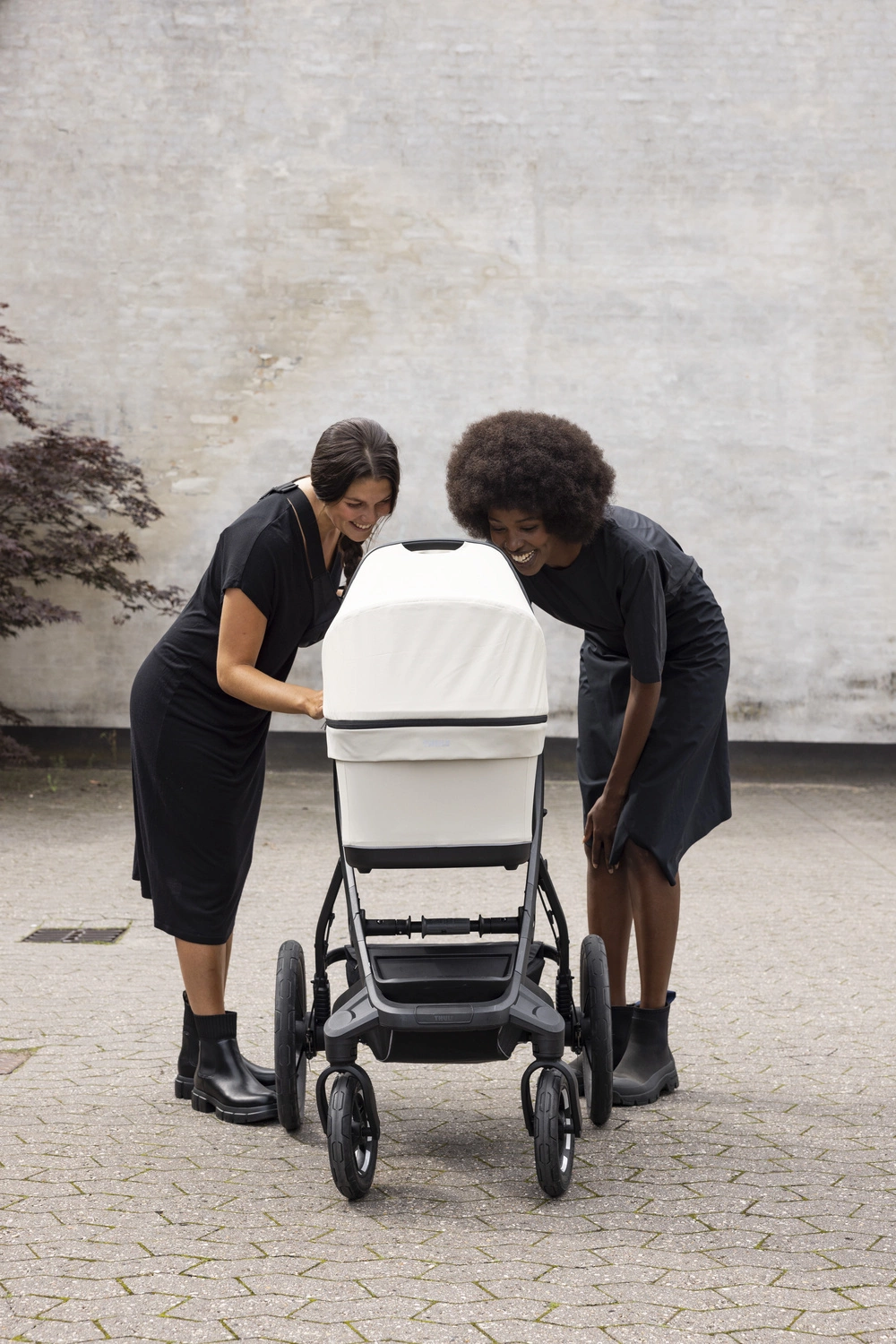 Duży, rozsuwany daszek z ochroną UV (UPF 50+) chroni dziecko przed szkodliwym promieniowaniem słonecznym i innymi elementami atmosferycznymi, zapewniając miłą przejażdżkę niezależnie od pogody. Przewiewna konstrukcja daszka gwarantuje także świetną cyrkulację powietrza, co jest kluczowe dla zapewnienia komfortu malucha w ciepłe dni. Dodatkowo, odblaskowe elementy na stelażu daszka i podstawie gondoli zwiększają widoczność po zmroku, poprawiając bezpieczeństwo podczas wieczornych spacerów.Montaż Thule Bassinet na ramie wózka jest szybki i bezproblemowy dzięki adapterom zatrzaskowym, co pozwala na łatwe przekształcenie wózka spacerowego w idealne miejsce do drzemek dla dziecka. Ergonomiczny uchwyt ułatwia przenoszenie gondoli, czyniąc ją wygodnym rozwiązaniem dla rodziców w ruchu. Dzięki swojej funkcjonalności i wyjątkowej konstrukcji, Thule Bassinet jest doskonałym wyborem dla rodzin ceniących aktywny styl życia i komfort swoich najmłodszych.