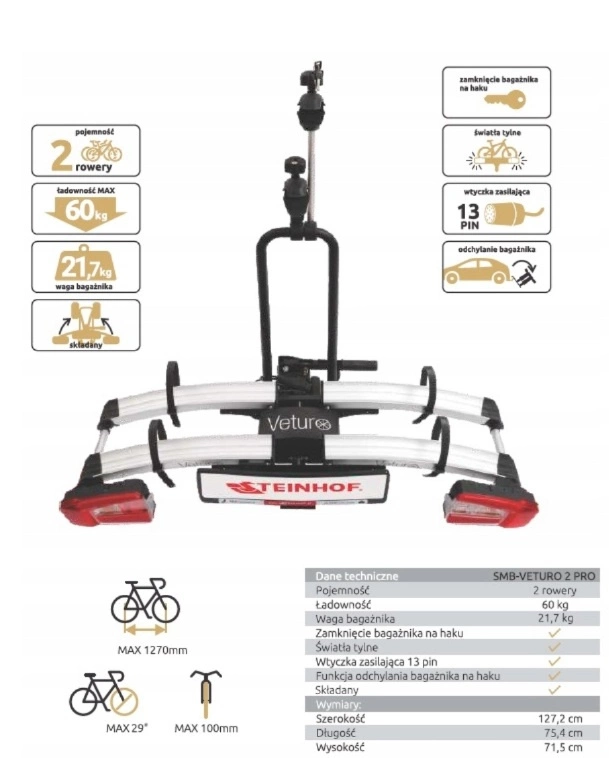 Szukasz solidnego i wygodnego rozwiązania do przewozu rowerów? Postaw na VETURO-2 PRO – wszechstronną platformę rowerową, która łączy funkcjonalność, bezpieczeństwo i nowoczesny design.