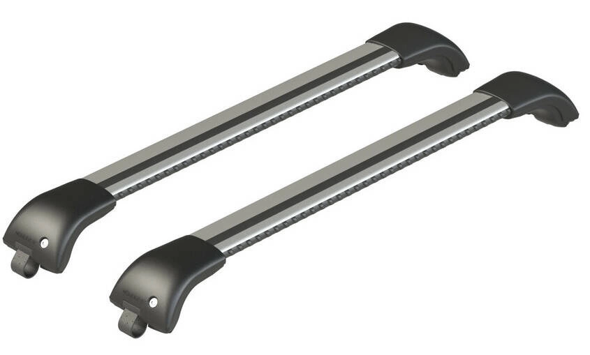 Aerodynamiczny, aluminiowy bagażnik dachowy w kolorze srebrnym. Nordrive Silenzio XC charakteryzuje się unikalnym designem, dzięki któremu bagażnik idealnie wpisuje się w linie relingów, co zapewnia harmonijne wkomponowanie w sylwetkę auta i podkreśla jego nowoczesny wygląd.