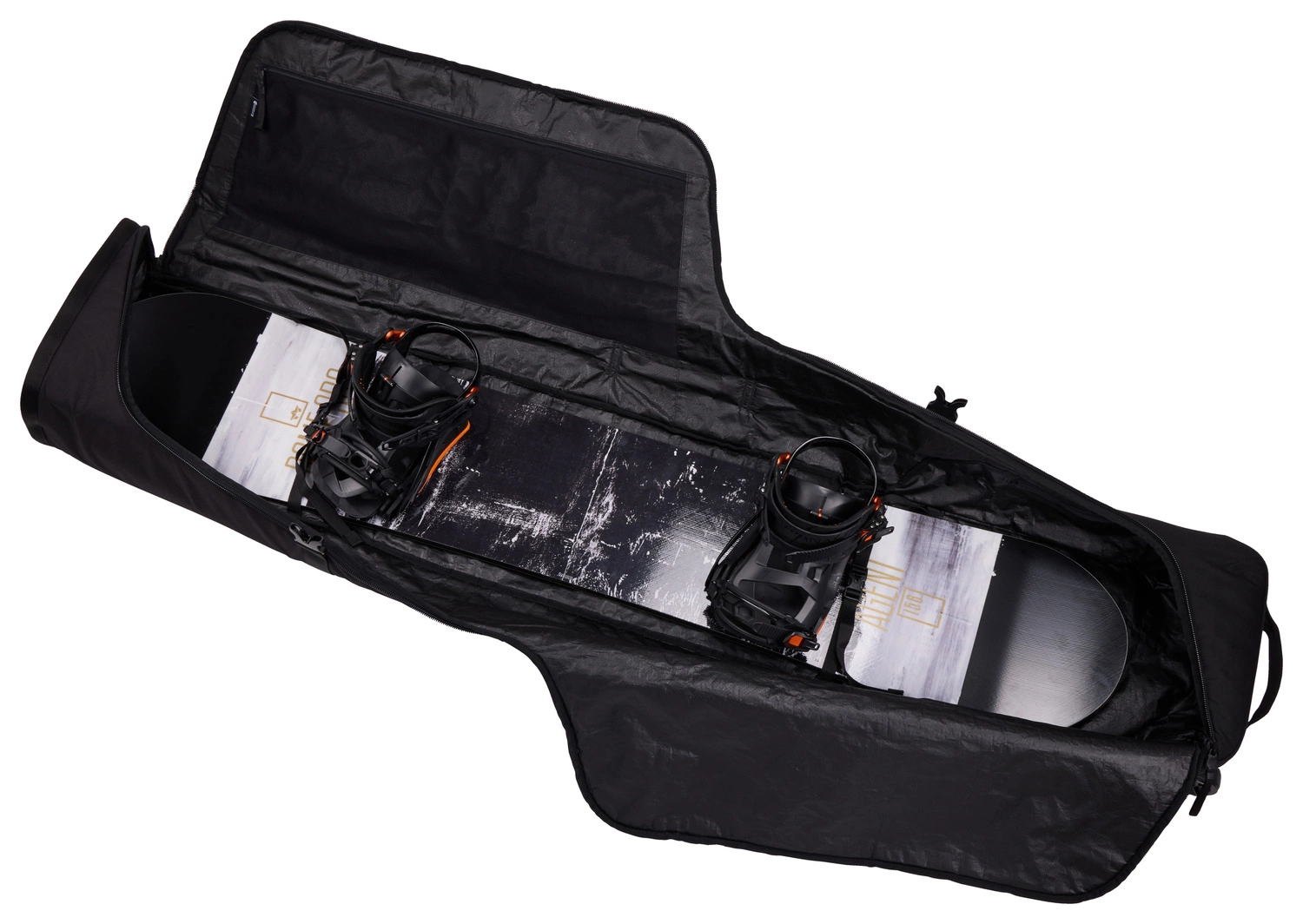 • Wyściełane przegrody ochronne: Dwa wyściełane rękawy ze ściągaczami skutecznie zabezpieczają snowboardy i odzież, jednocześnie umożliwiając utrzymanie porządku wewnątrz torby.