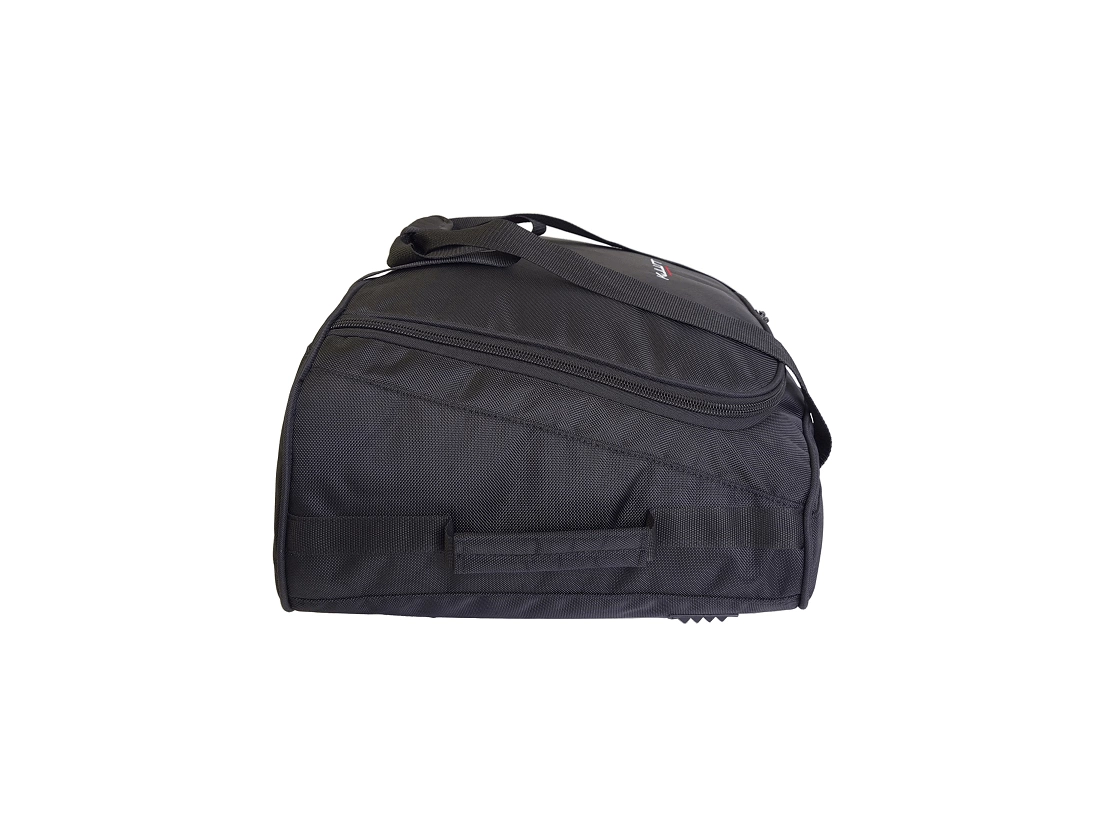 Torba została zaprojektowana z myślą o pochyłej przedniej części boxa dachowego – tam, gdzie przestrzeń staje się wyższa i trudniejsza do zagospodarowania. Dzięki skośnej górnej ściance można ją maksymalnie wysunąć do przodu, co pozwala wykorzystać każdy centymetr przestrzeni. Szeroki otwór ułatwia pakowanie większych przedmiotów, a sama torba nie przemieszcza się podczas jazdy – stabilnie blokuje się między pozostałymi torbami.