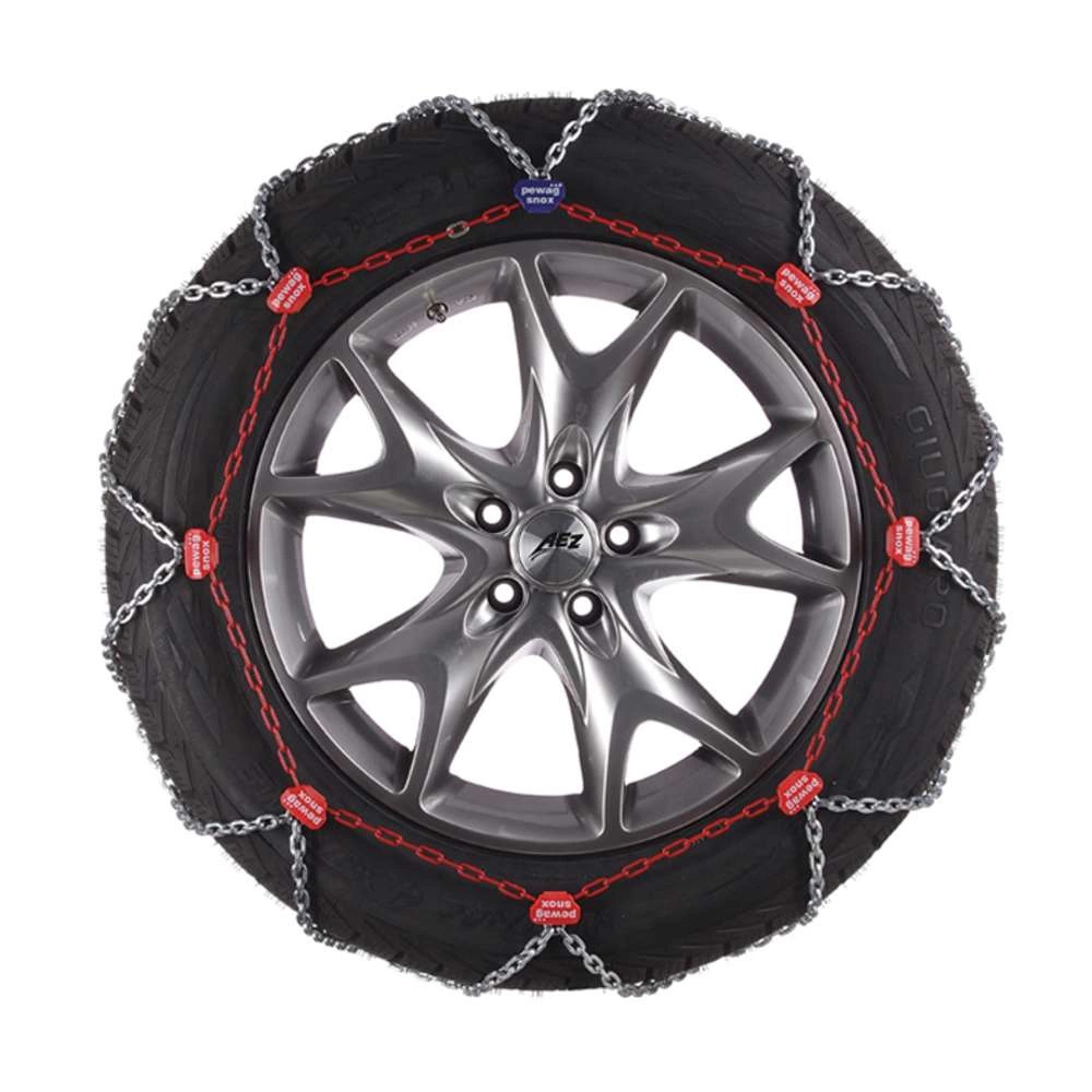 Łańcuchy Pewag Snox SUV są doskonałym wyborem dla samochodów z napędem na przednie koła, ale sprawdzają się również w innych pojazdach w trudnych warunkach zimowych. Model Pewag Snox SUV jest kompatybilny z oponami w rozmiarach:
