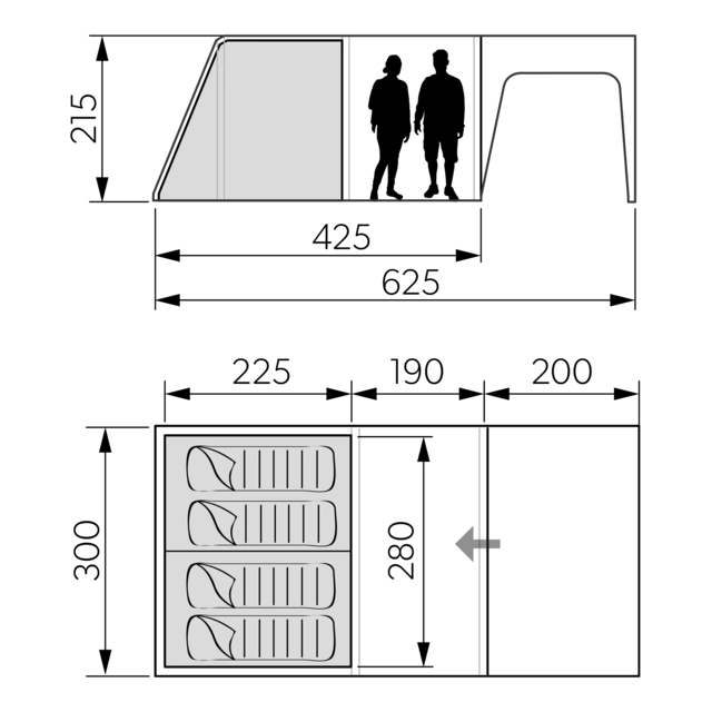 • Oddychający materiał: poprawia cyrkulację powietrza wewnątrz namiotu, eliminując duszność.