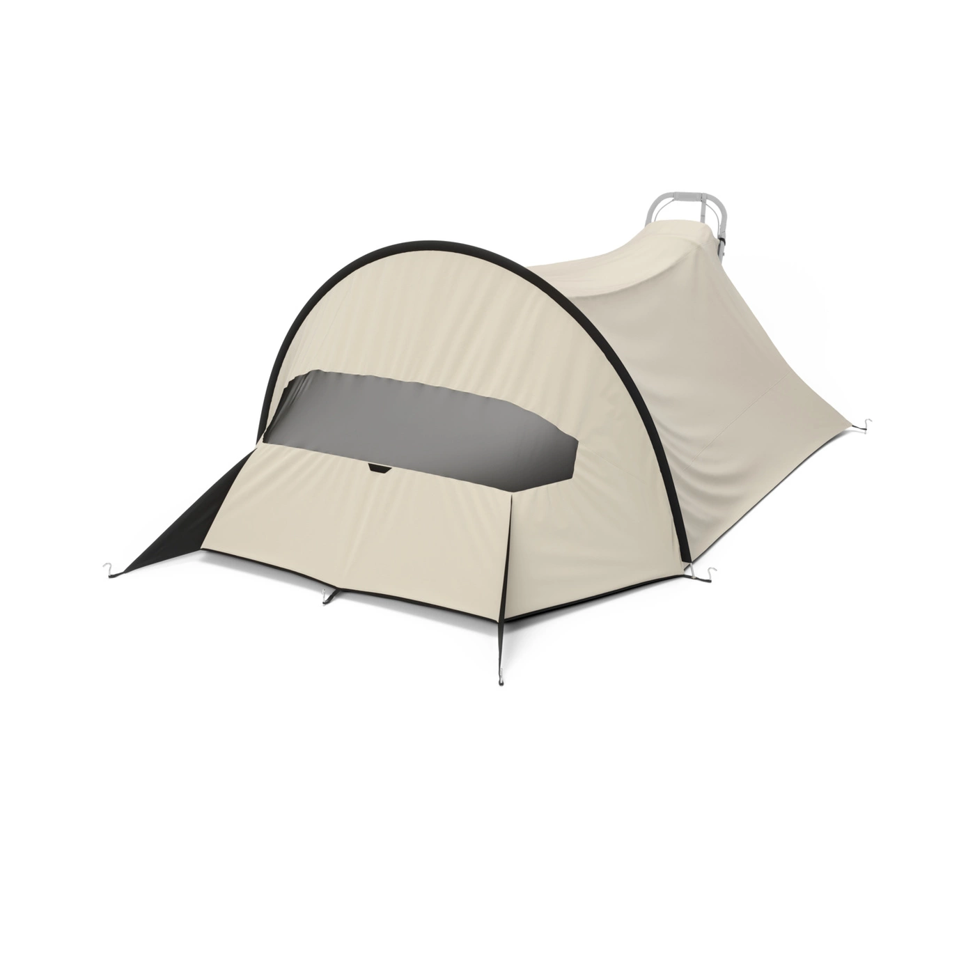 - Osłania przed wiatrem, tworząc przyjemne, zacienione środowisko wewnątrz wózka lub przyczepki