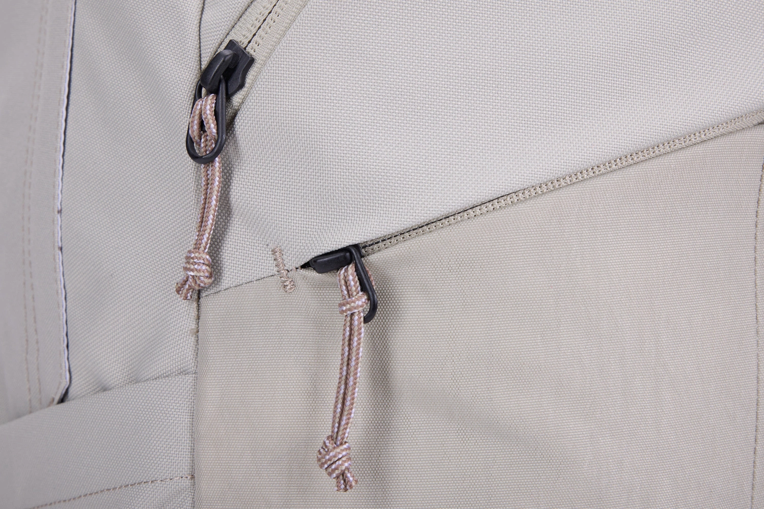 Plecak wykonany jest z materiałów pochodzących z recyklingu, dlatego jego tkanina może mieć delikatne odcienie i nieregularną strukturę
