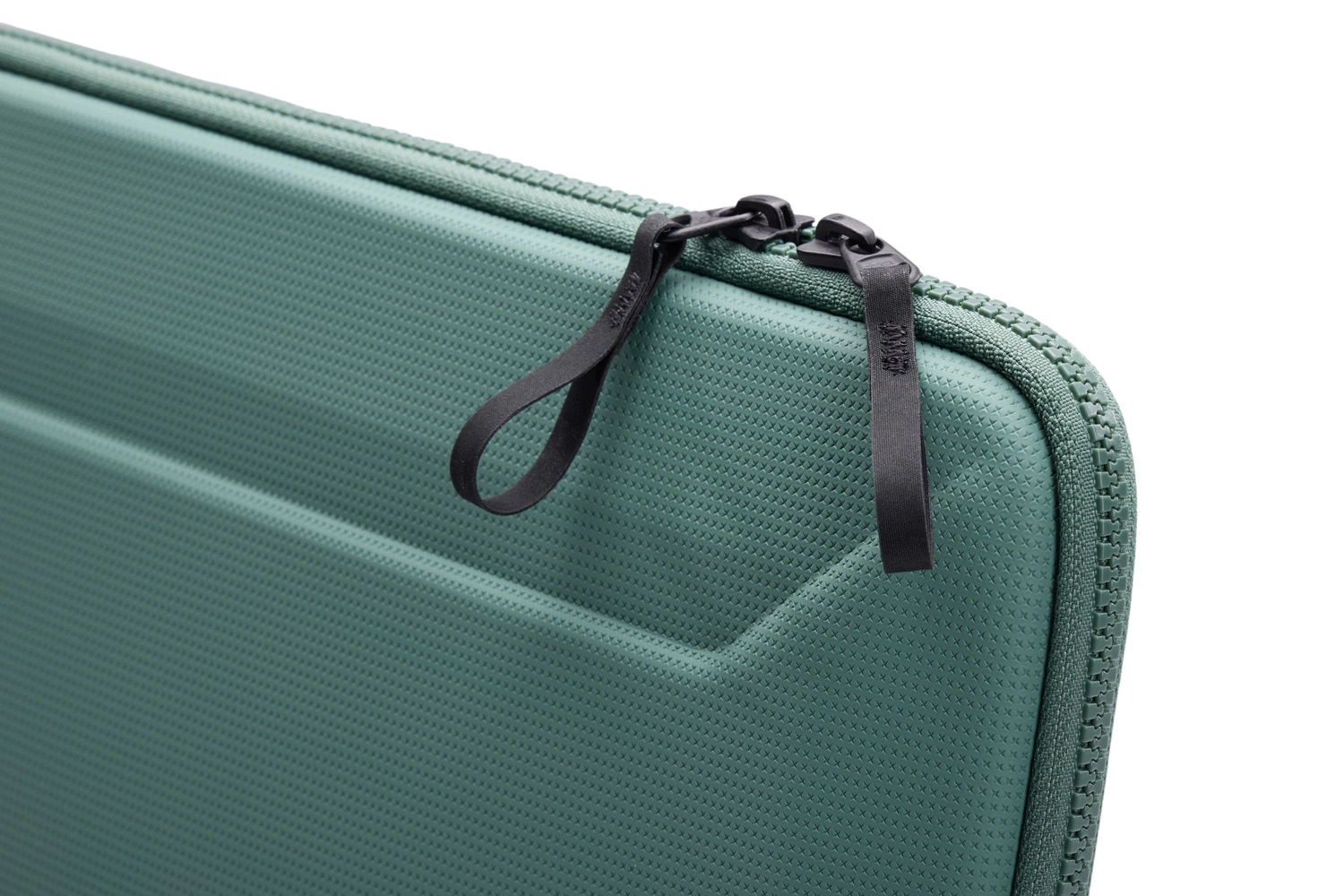 Formowana powłoka zewnętrzna oraz wzmocnione krawędzie skutecznie chronią laptop przed naciskiem, uderzeniami i uszkodzeniami mechanicznymi. Pokrowiec zachowuje smukły profil i nie zwiększa znacząco objętości sprzętu.