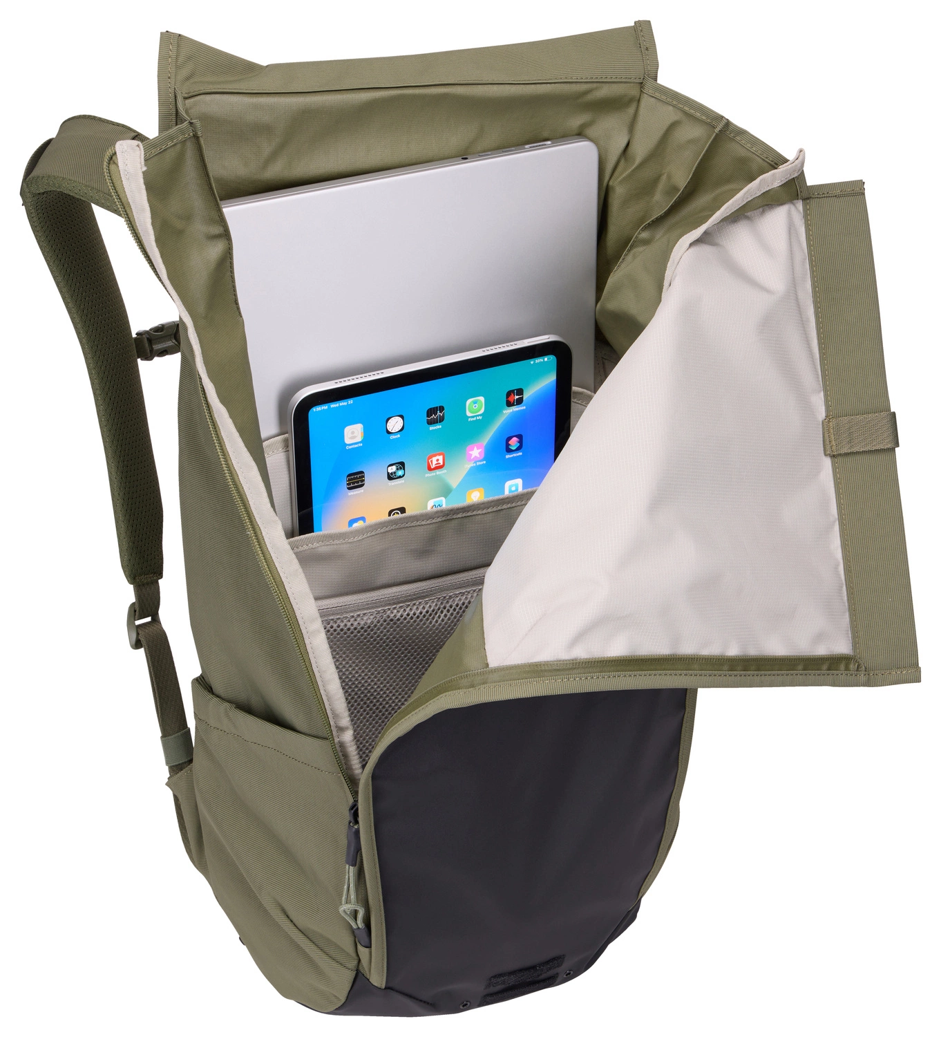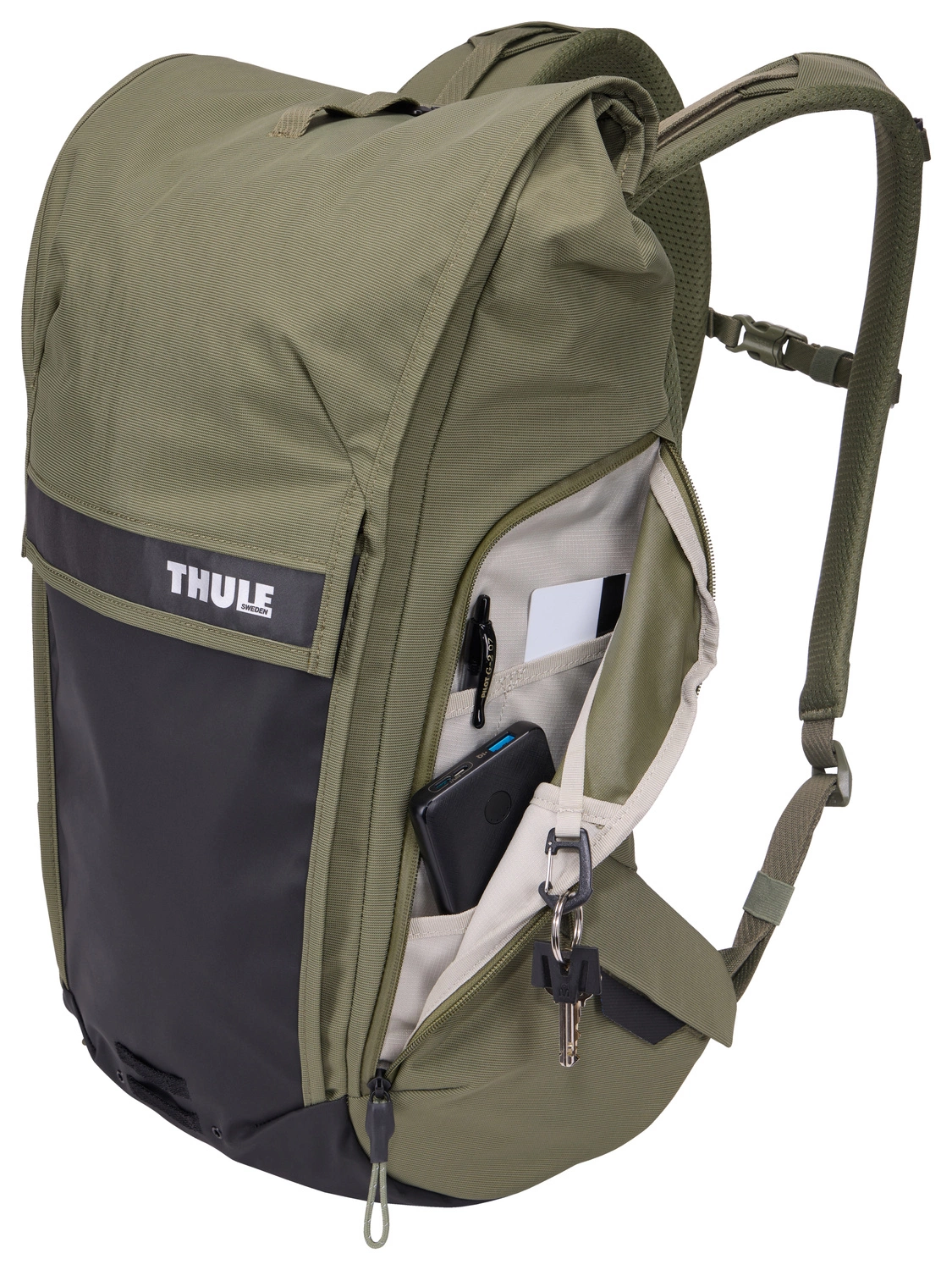 - Thule Paramount 20L to wytrzymały plecak rowerowy z wodoodpornego materiału, z kieszeniami na laptopa, telefon i kask. Zapewnia komfort i bezpieczeństwo dzięki regulowanym pasom oraz odblaskowym elementom.